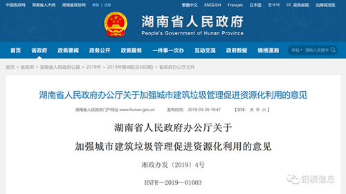 《湖南省人民政府办公厅关于加强城市建筑垃圾管理促进资源化利用的意见》