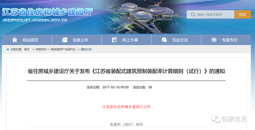 《关于发布《江苏省装配式建筑预制装配率计算细则(试行)》的通知》