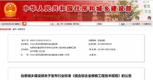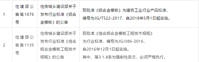铝模板住建部标准2项