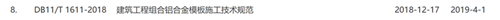 DB11/T 1611-2018《建筑工程组合铝合金模板施工技术规范》