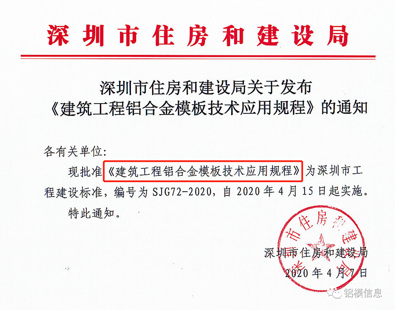 二、加大对应用项目的支持力度。对采用铝模板的建筑项目,在绿色建筑评价中可作为施工管理和提高与创新评分项,予以加分;对竖向结构采用高精度铝模板达到清水混凝土免抹灰效果的,可计入装配式建筑评价分值;重点支持铝模板应用项目申报住房城乡建设部科技计划项目;在安全生产标准化示范项目、优质结构工程评选中,优先考虑使用铝模板的项目。