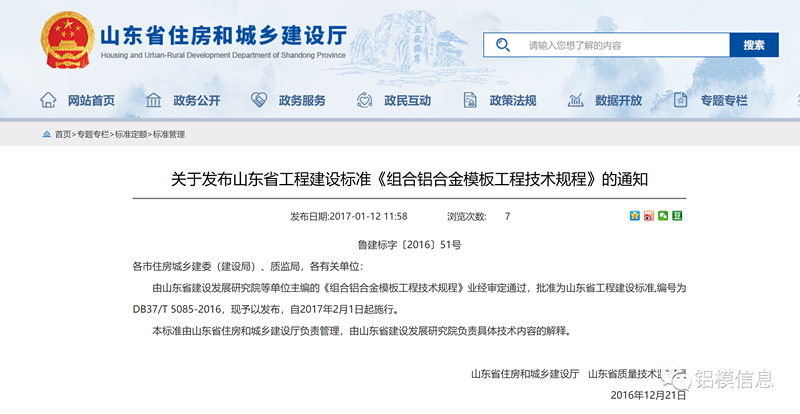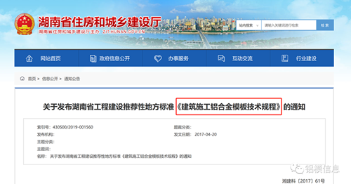 铝模板地方标准+住建部标准不断完善